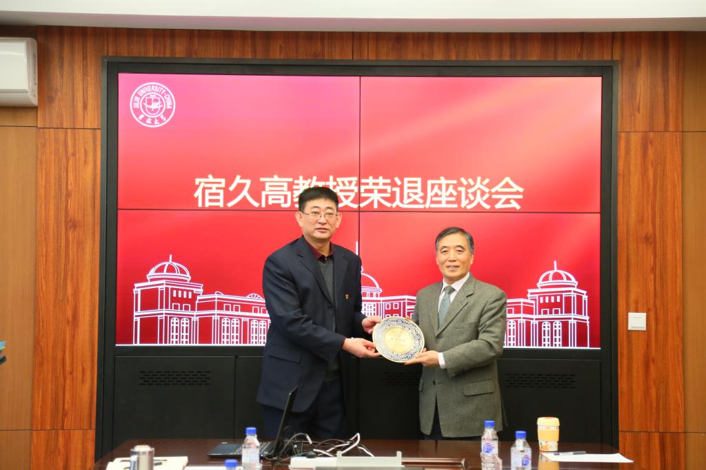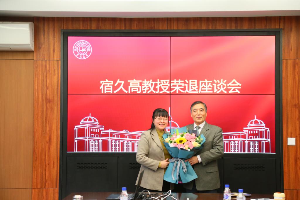 刘昌松书记与张玫玫院长分别向宿久高教授赠送了荣退纪念奖盘与鲜花,并表达了对宿久高教授未来生活的美好祝愿和衷心祝福。