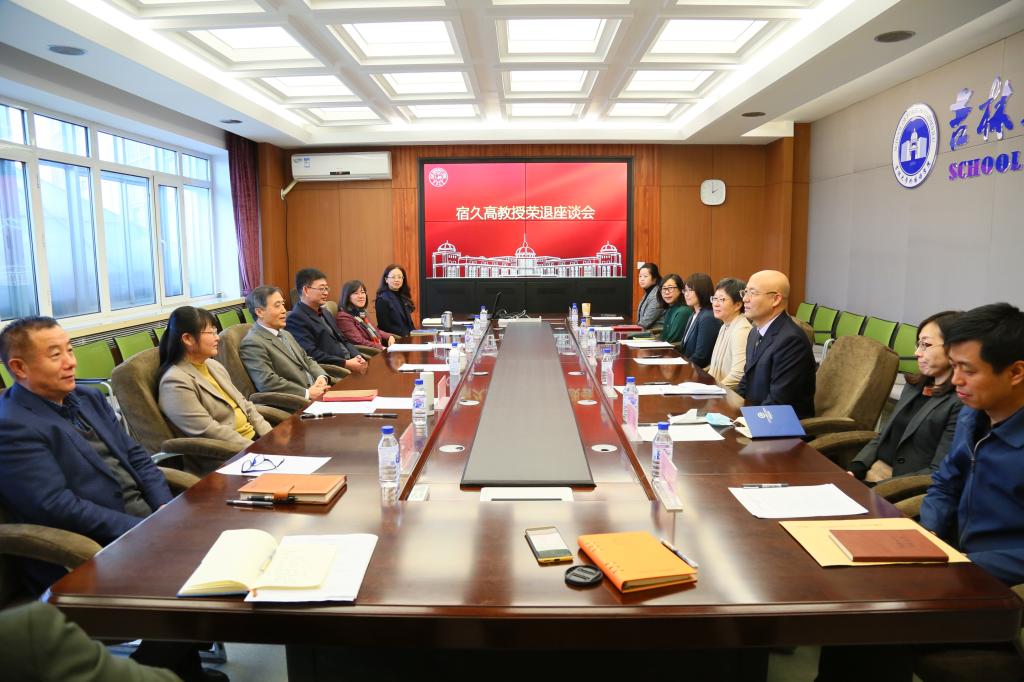 在外语楼318室举行了荣退教师座谈会。荣退教师宿久高教授,学院党政领导班子与日文系教师代表参加了会议。