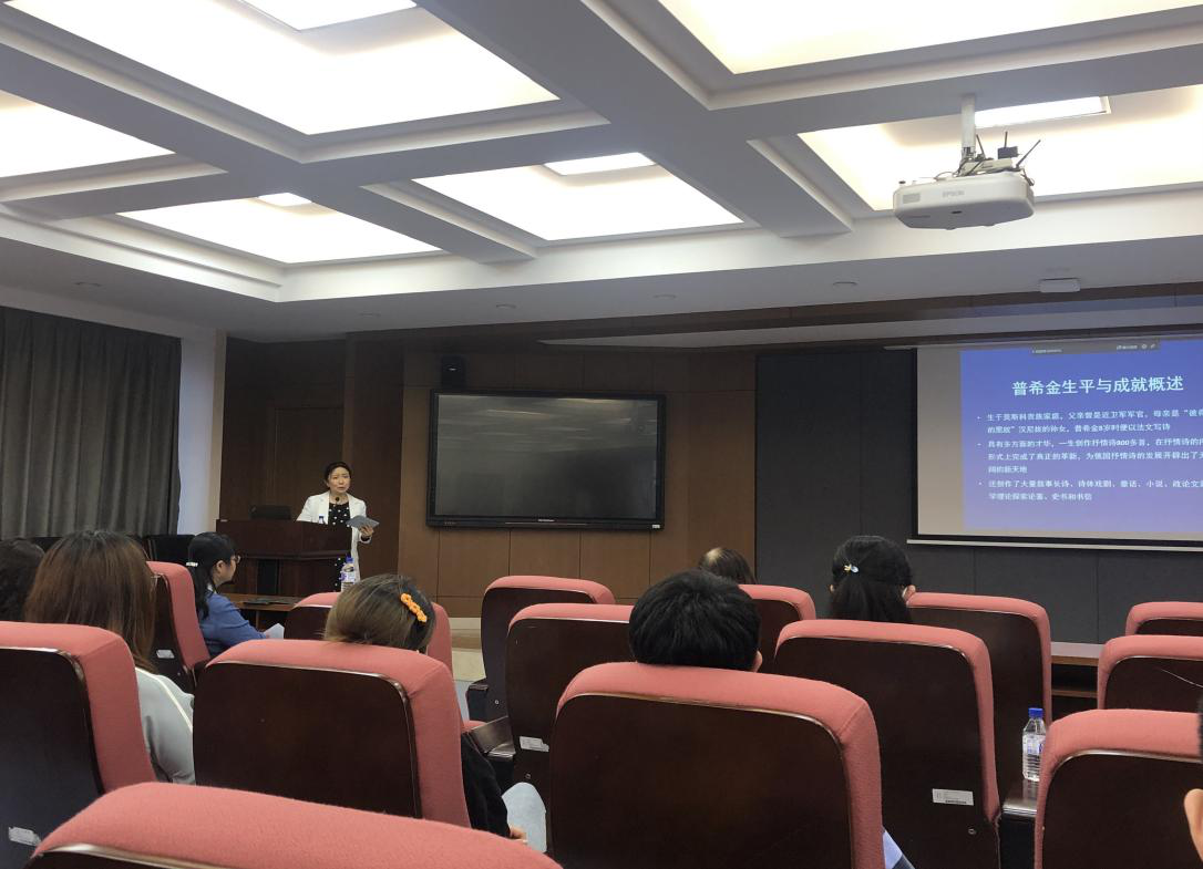 柳若梅教授主要从普希金创作生平、18世纪俄国社会中的中国影响、俄国东正教驻北京使团所传播的中国文化信息、普希金诗歌中的中国元素等方面讲述了中俄文学关系。普希金是俄国著名的文学家,现代俄国文学的奠基人,被誉为“俄国文学之父”。普希金成长过程中所接触到的俄国社会生活中的中国元素,体现在其作品之中,推动了中国主题在俄国社会思想文化界的影响。柳若梅教授以普希金诗歌中的中国元素为例,讲述了中国文化对俄罗斯民族文化的影响,促进了俄文系学生的学习热情,同时也提升了学生的民族文化自豪感。
