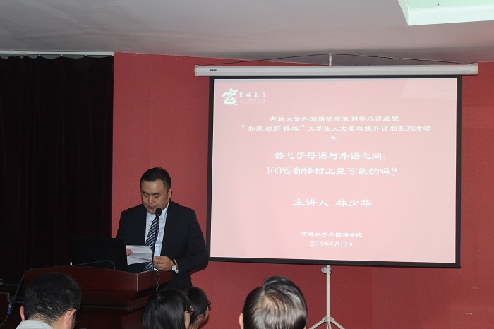 72级日语专业校友、中国海洋大学教授、著名翻译家林少华讲座在外语楼500会议室举办,这也是九色视频