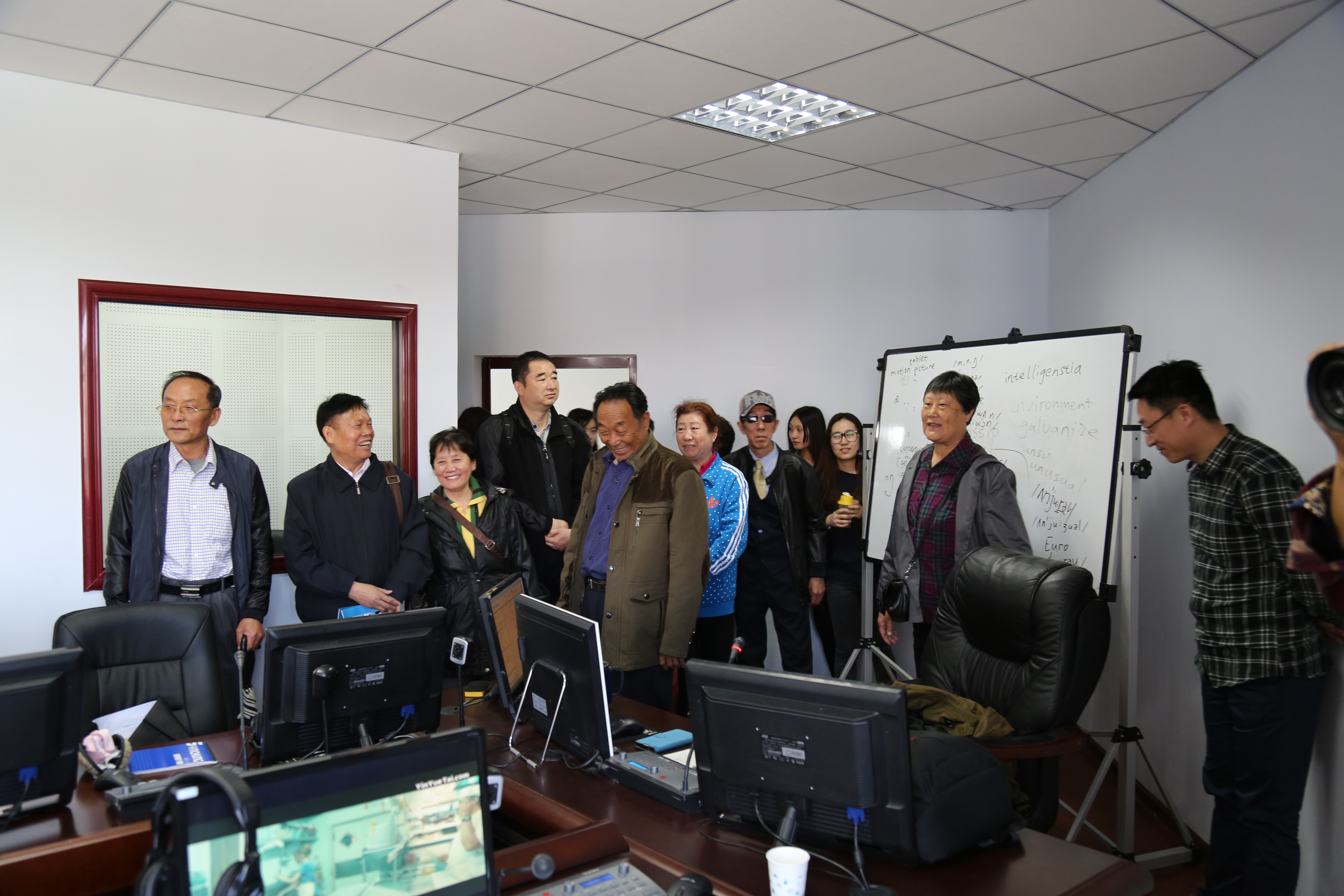 接着,老同学们一起参观了配备现代化教学设备的语音室、同声传译室,并与在校的同学们进行了亲切的交流。老同学唐桂云回忆道:“我们上课时可没有这么现代化的同传教室,就是一个大录音机,用非常大的磁带播放语音,可是我们学得非常认真。我们有的人从事教师职业,有的人在海关等国家机关工作,能够用英语跟外国人交流自如,这都要感谢母校的培养”。并语重心长地嘱咐:“同学们,你们一定要珍惜现在的优越环境,好好学习,对社会做出更大的贡献。”