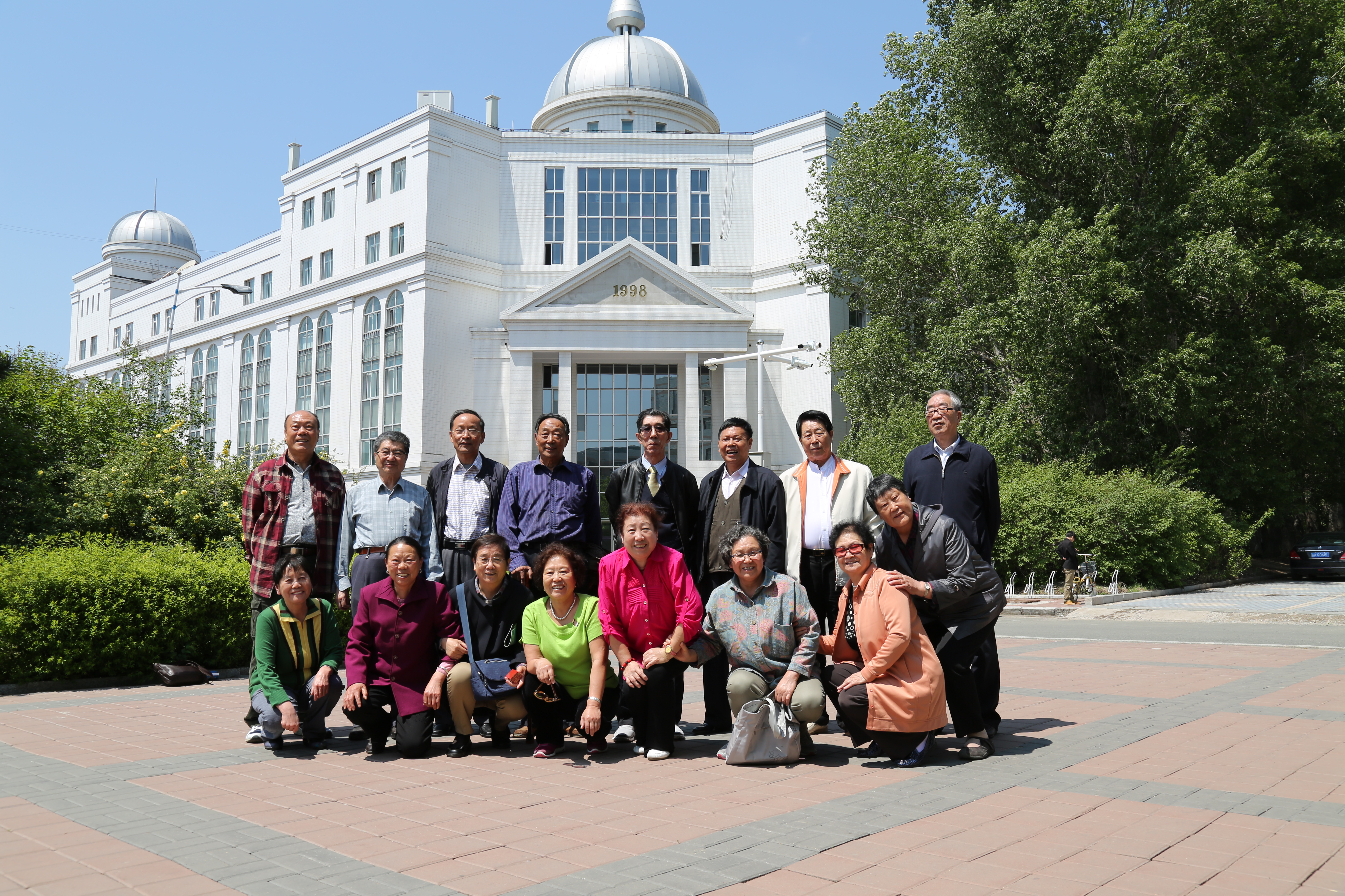 最后,老同学们像以前拍毕业照一样,在外语楼前留了一张合影,高兴的像群小孩子。看着这样一群满头银发、相互搀扶的老同学们,让人不禁由衷地祝愿他们健康长寿。