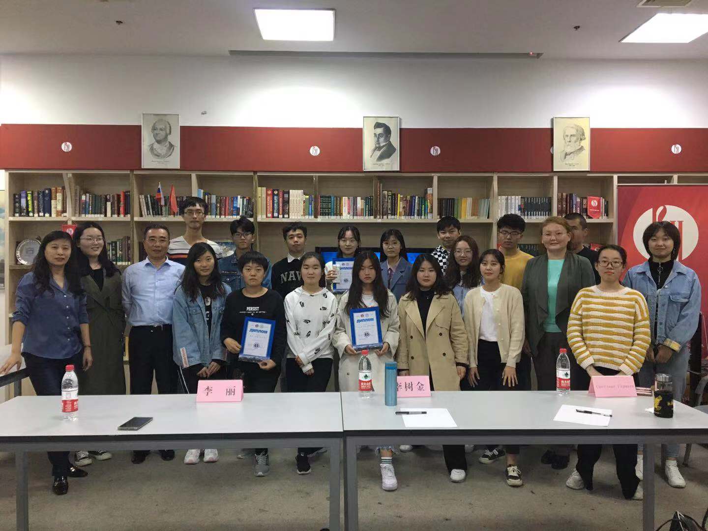 俄语系主任李树金老师、俄语系教师李丽和Светлана Гармаева老师担任此次比赛评委。